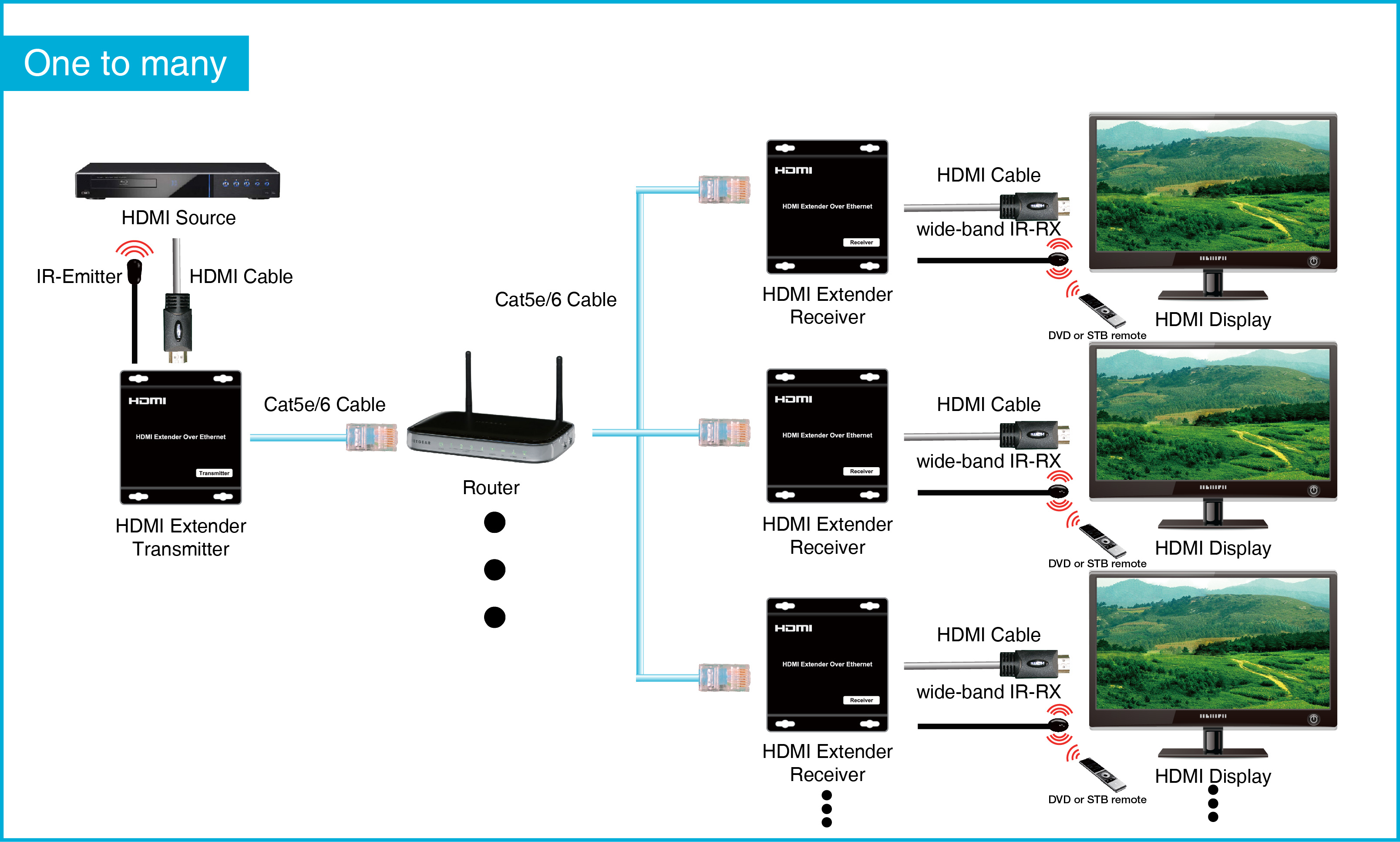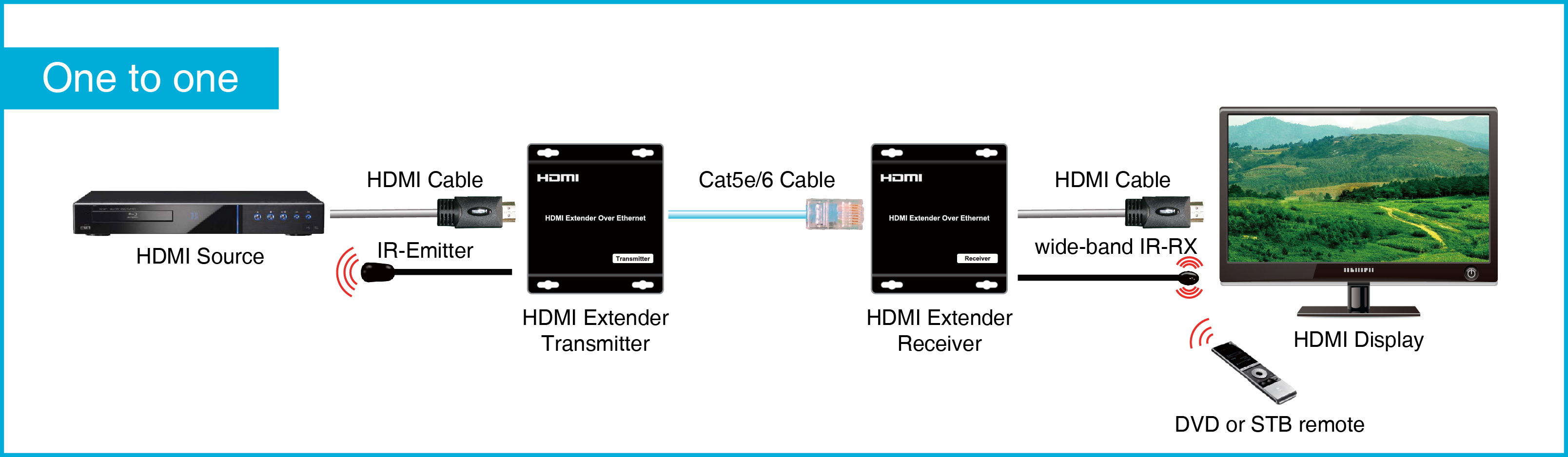 - Extends 1080p HDMI signals up to 120m over a single UTP Cat5e/6 cable