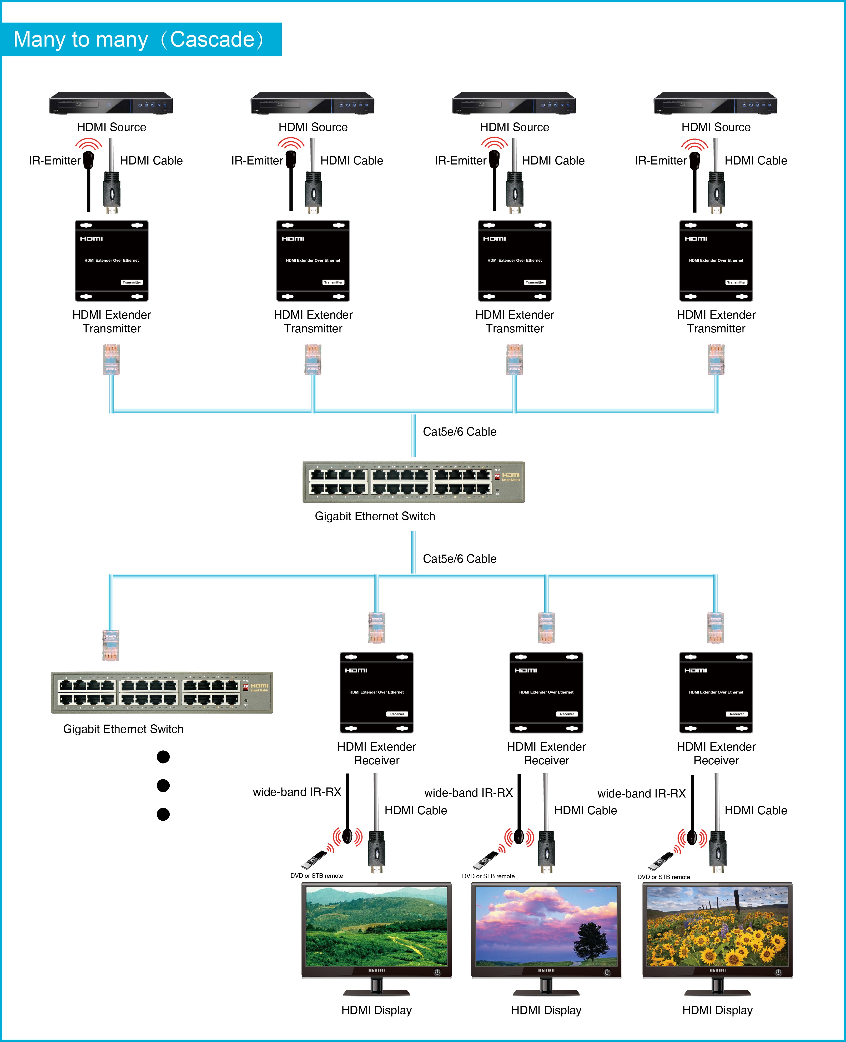 - Flexible and scalable HDMI 1080p Video Wall Broadcasting with Gigabit Ethernet LAN